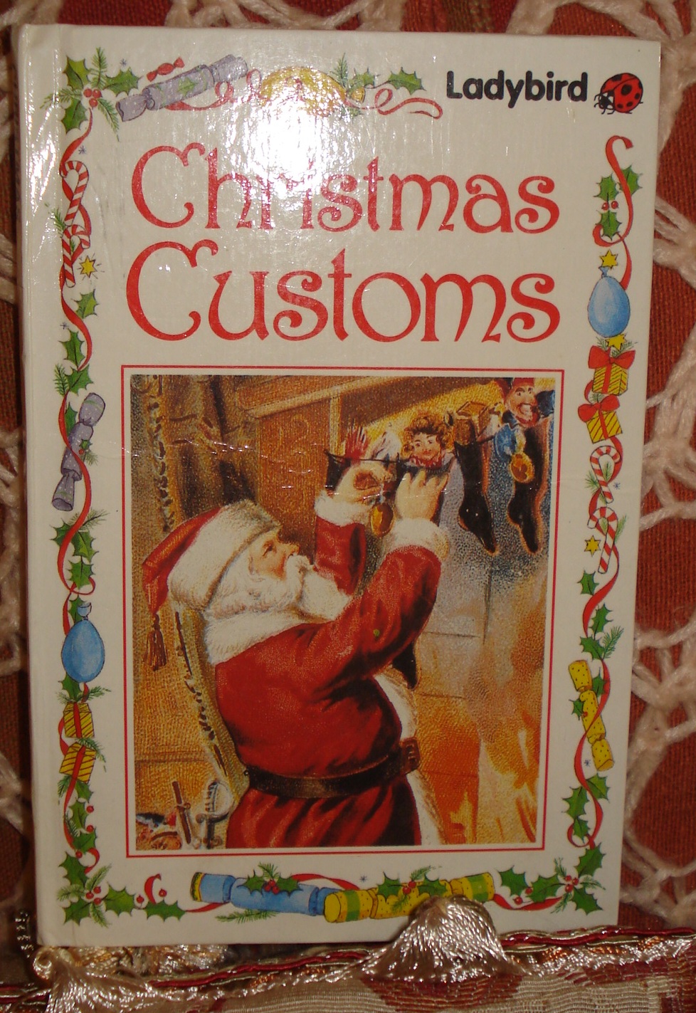 Pages are decorated with brightly coloured borders of ribbon and holly, as well as loads of cheerful , modern illustrations, and a few older pictures to how things were in the past – bringing home the Yule log, stirring the Christmas pudding, and so on. It doesn’t go into anything in great depth, but it’s as much part of Christmas as the traditions it describes.