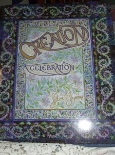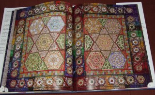 The book includes Sue’s design notes on the panels, describing the techniques she has used and, as with the panels themselves, each of these printed explanatory pages is set in the centre, with an embroidered border running around. Sue’s work is even reproduced on the endpapers, which show painted and embroidered butterflies.