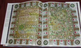 The project, which has around 40 panels, took her two years and on completion was displayed at Bath Abbey, where her earlier work is housed. With their vibrant colours and intricate designs, the panels call to mind those highly decorated ‘carpet’ pages in old illuminated manuscripts like the Book of Kells or the Lindisfarne Gospels. All but one have a central painted panel, surrounded by textile borders worked in a variety of stitches and techniques, using hand and machinery embroidery, appliqué, canvas work and beading, to name but a few. The overall effect, even in this two-dimensional format, is incredibly rich and textured – and the ‘real thing’, as it were, must be absolutely stunning. It makes my own embroidery look very clumsy.