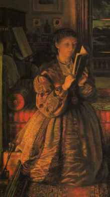 She’s completely engrossed in the book – perhaps it’s one of those unputdownable (is that a word?)’sensation’ novels which were so popular when this was painted in 1863. At any rate, she’s anxious to finish the volume before it gets too dark to read, because she wants to know what happens. I’m sure modern book-lovers will sympathise – I know I’ve often sat reading into the early hours, gripped by a book where I absolutely have to know the ending. And think how difficult it must have been to carry on reading in the days before electricity.