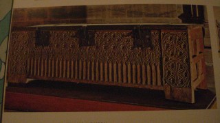 The exhibition on the library was fascinating, with information about the way vellum was produced and manuscripts produced, as well as details about the development of printing and the way books have been stored over the years. And there were two fabulous book trunks, which bowled me over. One, beautifully carved, had three locks, and the key for each was kept by different people, so no-one could access it on their own. The other was plainer, with a huge iron ring at each end, to hold a sturdy wooden pole, so the chest could be carried along when high-ranking clergymen went on their travels – I wonder what they would have thought about modern, light-weight E-readers!