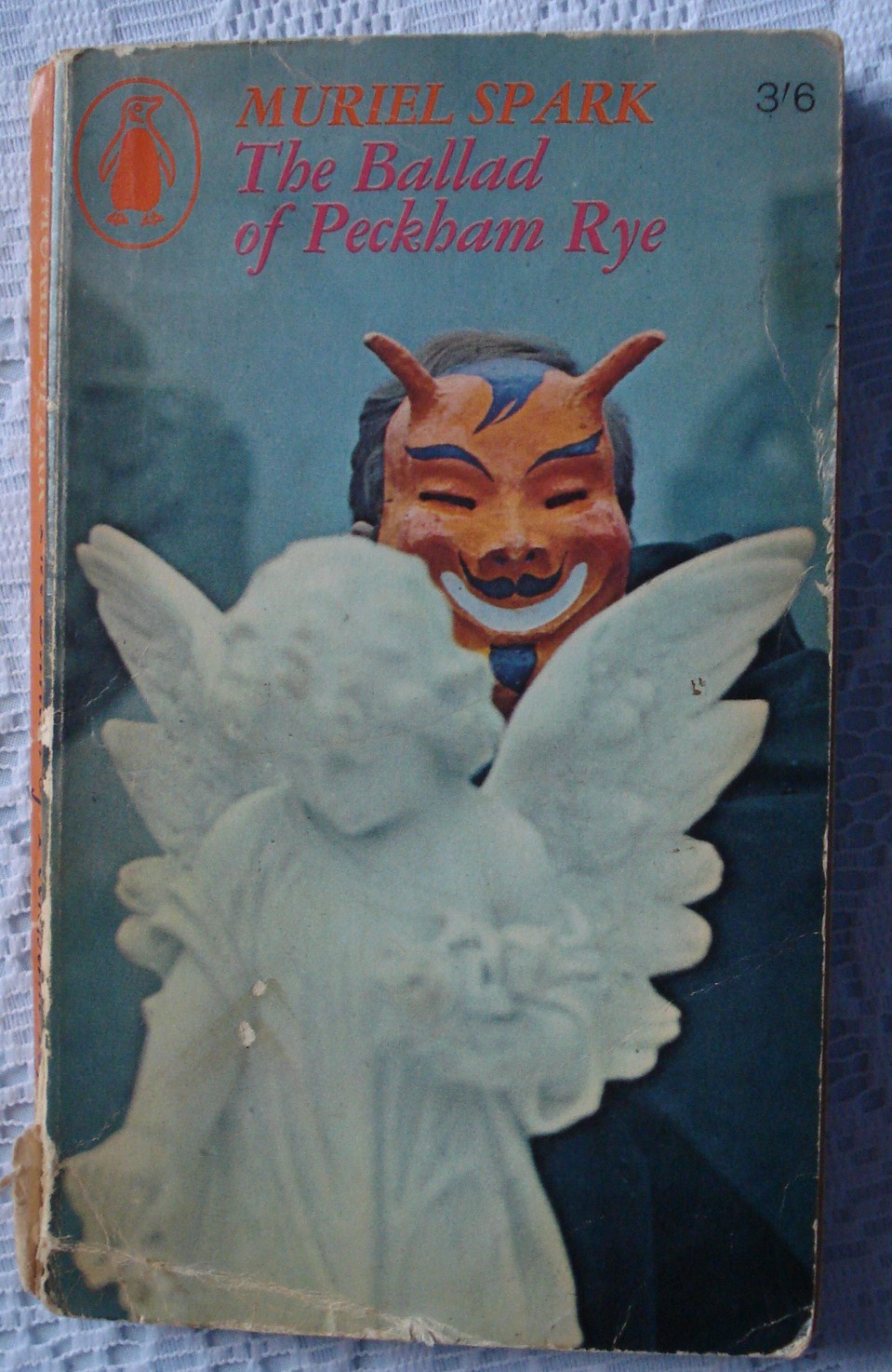 I read The Ballad of Peckham Rye when I was at school (but not for school, if you see what I mean), attracted by the title and the cover – a photograph of a man wearing a smiling devil’s mask, complete with horns, as he peers over the shoulder of a marble angel. It was the first Muriel Spark novel that I came across, as well as being one of the first contemporary novels I encountered (until then most of my reading was classics based). More than that, it was written by a modern woman, and opened up a whole new world in my reading life. I loved the spare quality of the writing, the wry humour, the subversive feel of the book, and the fact that there were no heroes and heroines in the conventional sense, just ordinary men and women going about their everyday lives, completely unprepared for the advent of Dougal Douglas and the devastation that accompanies him.