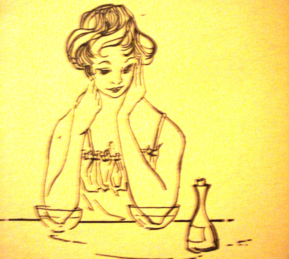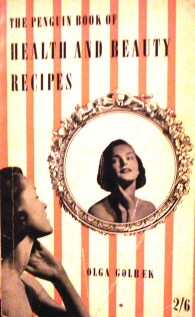 Looking beautiful in the 1950s must have been a full-time job for a woman. Even at night there was no let-up. You were advised to sleep with an elasticated band tied ‘fairly tightly’ under your chin and knotted on top of the head (to prevent a double chin),  to don bed socks and cotton gloves (so the creams smeared on your feet and hands would not mark the bedlinen), and to brush your eyelashes with rum and castor oil before retiring. All this – and more – I have gleaned from a yellowing edition of The Penguin Book of Health and Beauty Recipes, by Olga Golbæk, with the most delightful illustrations by Jennifer Rope. Originally published in Denmark, this English translation was issued in 1957 as a Penguin Handbook (PH25), when it cost half a crown, or 2/6 – that’s 25p for those of you who are too young to know about ‘old’ money.