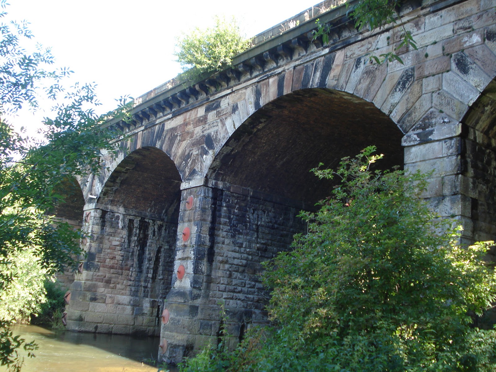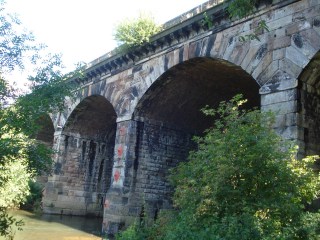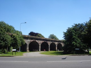 It’s 45-feet high (which is, I am reliably informed, around 7 metres), built of huge slabs of rustic-looking rock (though these may be facings on brickwork) and it runs across the landscape for 417 feet (that’s more than 200 metres), crossing two busy roads, a park, the River Anker, and an area of open land. One arch is slightly lower and wider than the others, and two have small walls which once formed part of gateways.