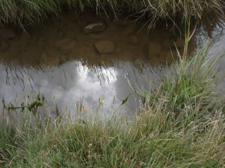 | Clouds reflected in one of the marshy pools at Bardsea, in Cumbria. |