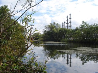and the juxtaposition of nature and industry existing side by side.