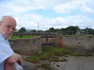 The entrance to the bay, where the great ships once sailed in and out, is now plugged with concrete, and the swingbridge that spanned the canal is long gone, but there’s a modern footbridge leading to the towpath which runs on one side. The ruined gates to the sea lock  are reflected in the water, a strange, ghostly reminder of the time when this was part of a thriving port.