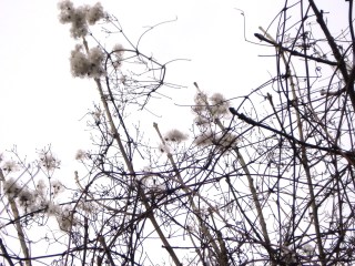 From a distance I thought this tree was covered in white blossom, which would have been odd at this time of year, but it turned out to be fluffy seedheads from Old Man’s Beard twined around the branches. |