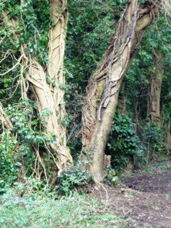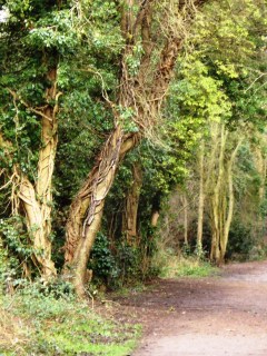 There were lots of other birds (mainly sparrows I guess), and grey squirrels, which get everywhere nowadays, but these ones weren’t as tame as the those back home in Tamworth. And, of course, plenty of trees. I’m not very good at identifying trees, but I can recognise holly when I see it, and there did seem to be a great many hollies, as well as masses and masses of ivy, which writhed and twisted around the trunks, with the old stems creating weird patterns.