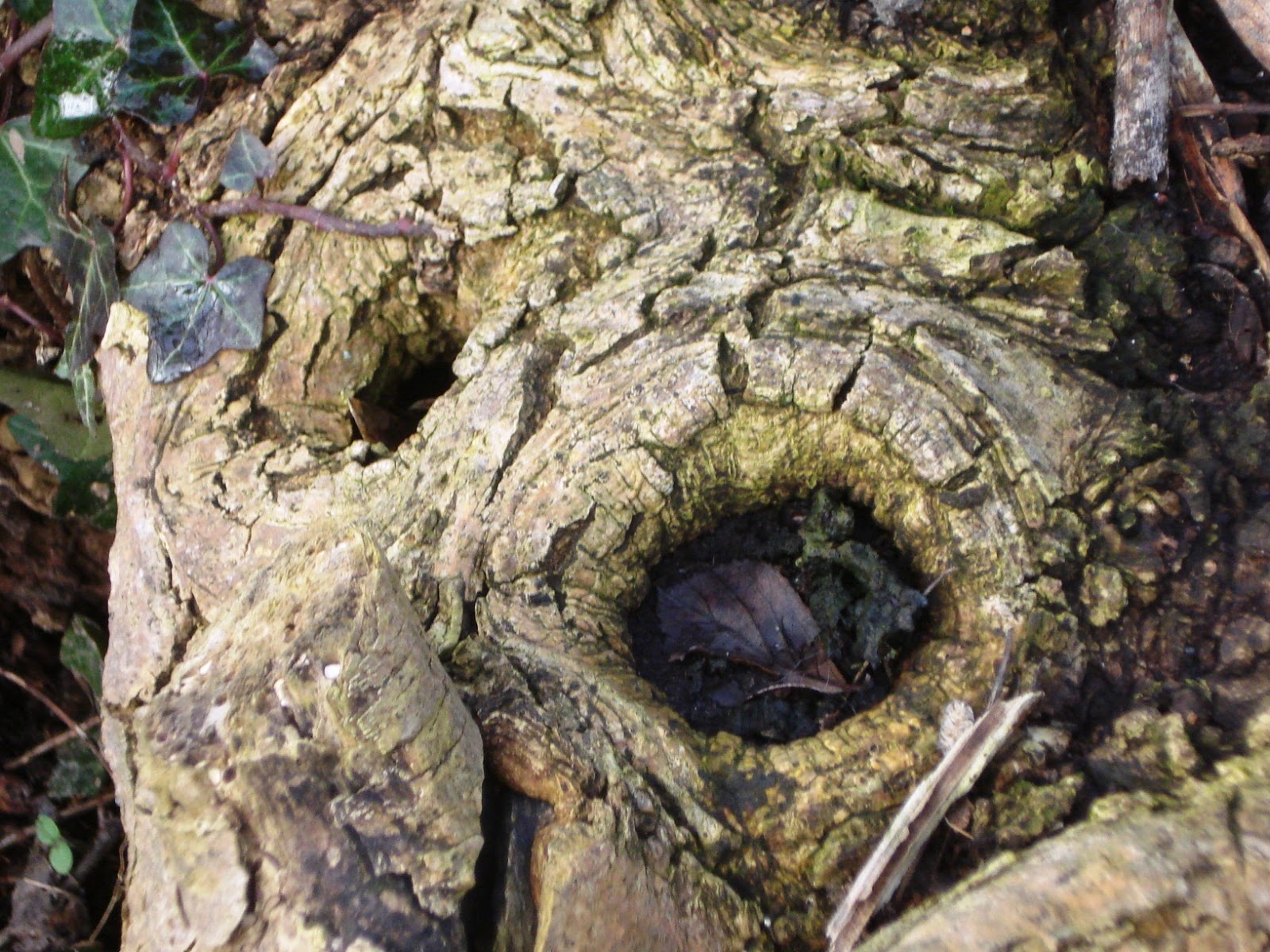 Markings, knots and holes on tree trunks were very strange. I think this looks like eyes and a nose. |