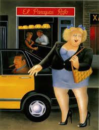 | I imagine Mrs Scott a bit like this Beryl Cook woman, but in 1940s clothes, with red hair. A rather sad figure really, but still liking a good time |
