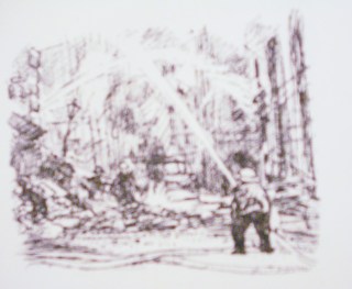 Through this jagged gap, with a broken wall beyond it, I saw Cranmer Court across the back courtyard and it was on fire. The fire brigades had already arrived and had run up their ladders and were bringing people down. You would have thought that the fact that they had had time to get there would have warned me that I had been unconscious for some considerable time, but that apparently did not register.