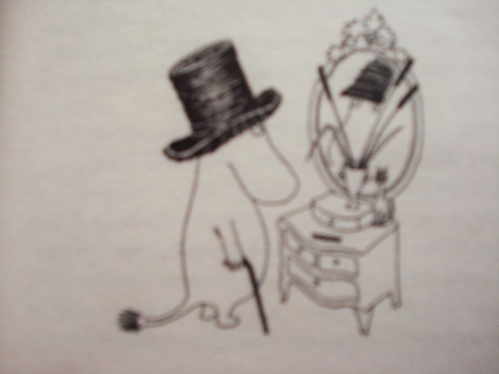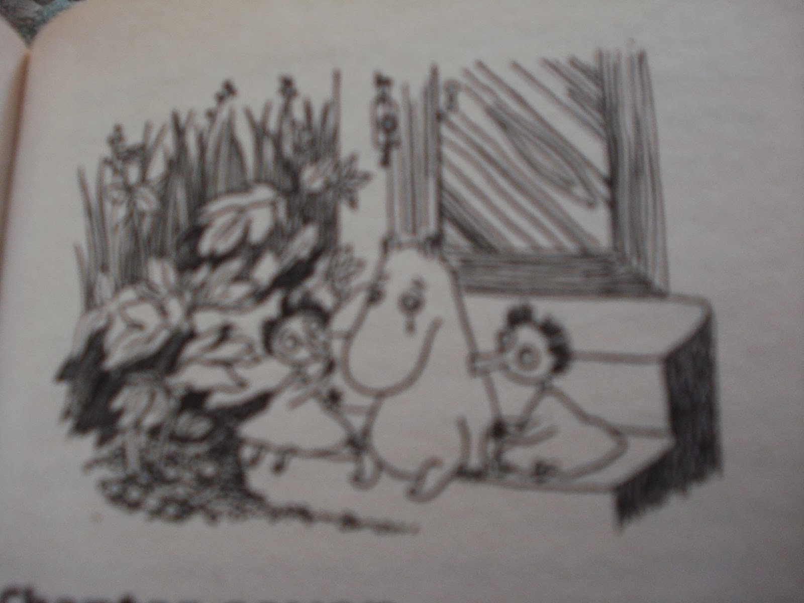 Anyway, in Jansson’s book the Moomins, and all their friends and acquaintances, are woken in the spring by the call of the first cuckoo (rather hoarse, because it’s still early in the spring, as well as being in the morning – four o’clock to be precise). As the world wakes around them, Moomintroll, Snufkin and Sniff climb a mountain, and at the top they find a tall, black, hat (like a top hat), so they take it home, intending to give it to Moominpappa, but it’s too big for him, so they turn it upside down and use it as a waste-paper basket. However, it’s the Hobgoblin’s Hat, and if something lies long enough in the Hobgoblin’s Hat it begins to change into something quite different…