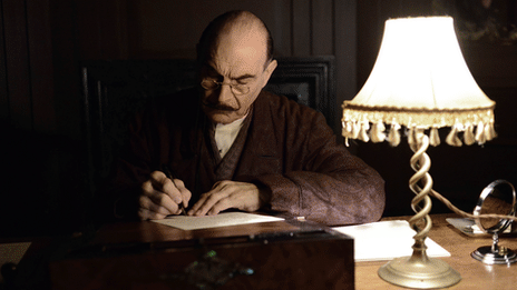 Poirot at work: Actor David Suchet as /Hercule Poirot in the Chanel 4 TV series. |