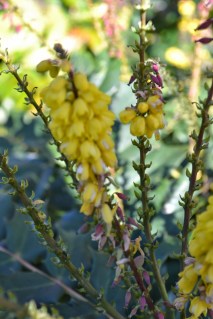 Doubtlessly there’s a very logical explanation, because strongly perfumed flowers are already in bloom, like this mahonia, which smells rather honeyish, like oilseed rape perhaps: