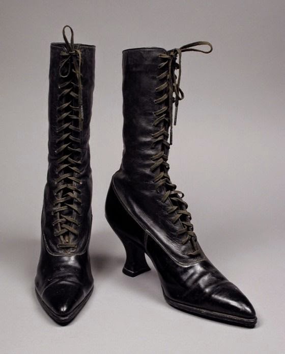 High, shiny, black boots! These were made in America in 1918, and I think they look pretty stylish, so perhaps Patricia wore something similar. Found on collections.lacma.org |