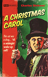 The front of Robert Louis Stevenson’s The Strange Case of Dr Jekyll and Mr Hyde includes a figure who bears an uncanny resemblance to rock star Alice Cooper (though it could equally well be said that Alice Cooper bears an uncanny resemblance to a character from a horror story), and another who I guess is Ozzy Osbourne. Romeo and Juliet are ‘Too wild to live, too young to die’; Tess of the d’Urbervilles is a busty blonde babe with a bottle of booze and a heart set on revenge, and Scrooge is a somewhat crazed Alastair Sim – a suitable tribute I feel, since he played the miser in the 1951 film.
