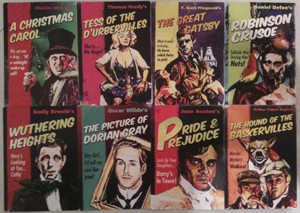 This Pulp! The Classicscollection is a new imprint from Oldcastle Books. According to the website, it ‘gives the nation’s favourite classic novels original retro covers in a pulp fiction style – with a dash of wry humour’. The designs seem to owe a huge debt to popular culture, and the marketing blurb in the online catalogue is perfectly in keeping with the pulp fiction theme – and is an absolute hoot.