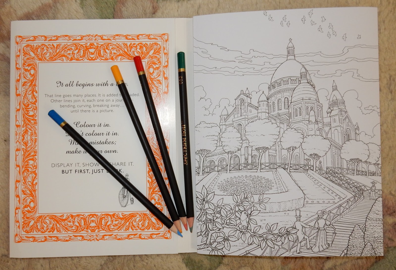 What a lovely book! I have to giggle at the colouring book phase that's going on at the moment – I've always coloured in and I've always just about been able to find sufficiently detailed colouring books to satisfy me. When a friend was in hospital for a long time last year, we had a colouring book on the go which went back and forth, a page each, which was lovely. I am taking advantage of the craze to pick up nice sets of pencils and new books while they're readily available and on special offer, though!