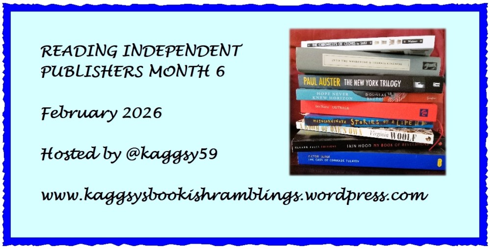 OK, so I abandoned this blog, and moved to Blogger, where nothing much got done because life got in the way – Covid, family illness, eye problems, moving house. But I’m entitled to change my mind, and now I’m back trying to re-establish The Book Trunk and give it a new look. It’s a bit of a work in progress, and I need to set things up properly, but I wanted to join Reading Indies which runs throughout February over at kaggsysbookishramblings, where Karen is hosting a celebration of independent publishers.